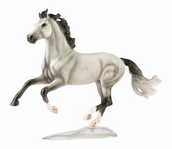 1200 Ideal Oldenburg Stallion breed: Oldenburg color: Grey pattern: Dapple size in inches: 11H x 4.5W x 12L recommended age: 8 and Up related item: #2465 - Stoneleigh II Dressage Saddle date available: Dec 1, 2004 description: A remarkable example of the Oldenburg breed, Ideal was imported to the United States as a youngster and has never looked back. He is a highly successful breeding stallion--more than 50% of his youngsters are so special that they receive the breed's Premium Foal award--successfully passing on the beauty, uncanny intelligence, strength of character, and great athleticism that makes him such a standout