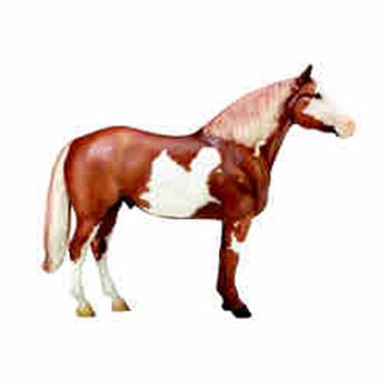Like A Diamond Overo Paint Horse Item: 1201 A sorrel overo Paint Horse stallion with an all-white face, the easy-natured Like A Diamond owned by Sue Hearst was an exciting and memorable cutting and reining horse champion before he retired to stud several years ago. His foal crops have been dazzlers, with both reining horse and cutting horse Futurity winners among them! Model Size : Traditional Color : Sorrel Overo Breed : Paint