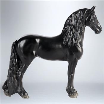 Registered Friesian horses are always black, from deep jet black to a bay-black. White markings are not allowed on the body or the legs. They have long, thick, flowing manes and tails and pronounced fetlock hair. The Friesian horse holds its head high and proud with an arching neck. This is a horse of luxurious and proud appearance, full of personality, honesty, and eagerness to work.